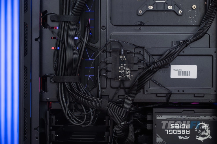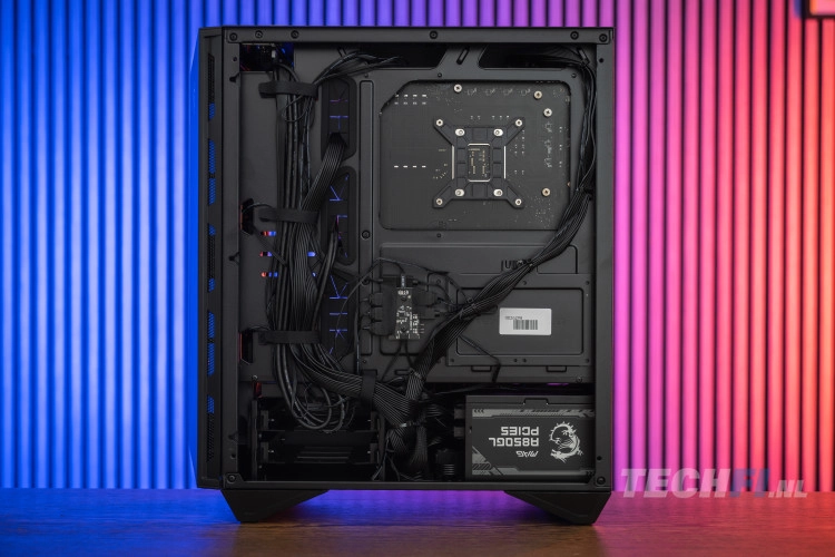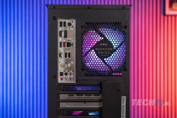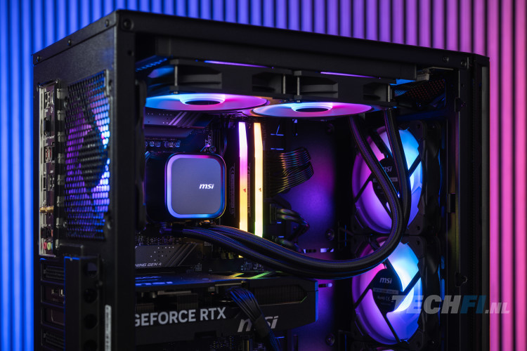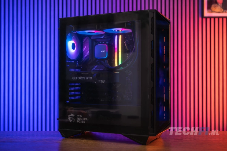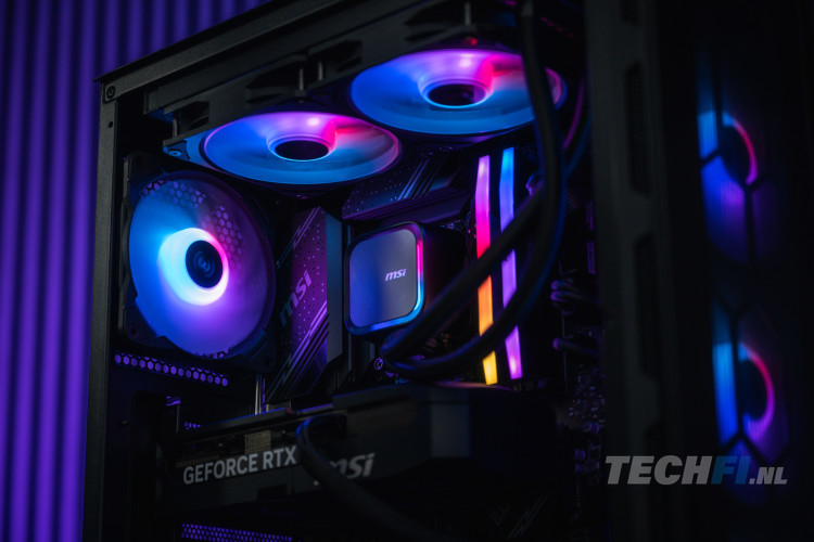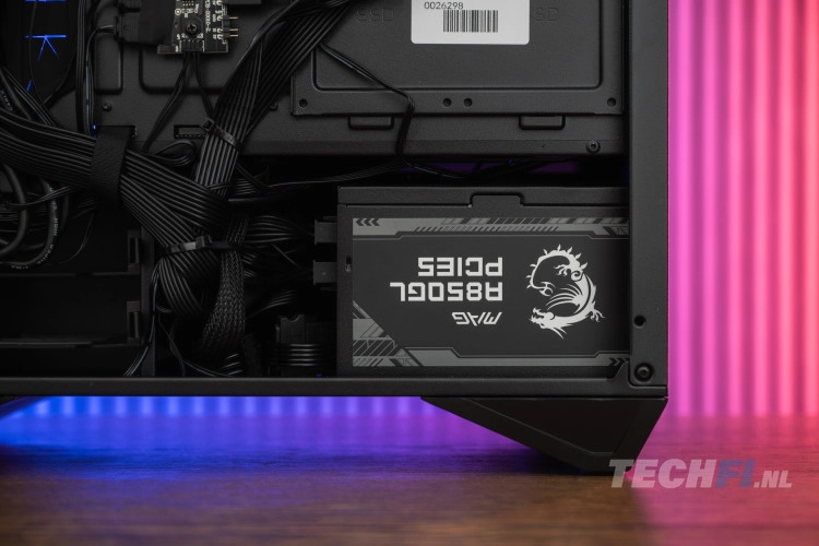 Potentiële upgrades worden verder in de hand gewerkt aan de hand van de geïntegreerde voeding. Dat betreft namelijk MSI’s eigen MAG A850GL, die met 850 watt bijna overkill is voor de configuratie. De voeding beschikt bovendien over de nieuwe pcie 5.0-stroomstandaard, inclusief nieuwe 16-pins kabel om moderne GeForce-videokaarten makkelijk van tot 600 watt te voorzien.