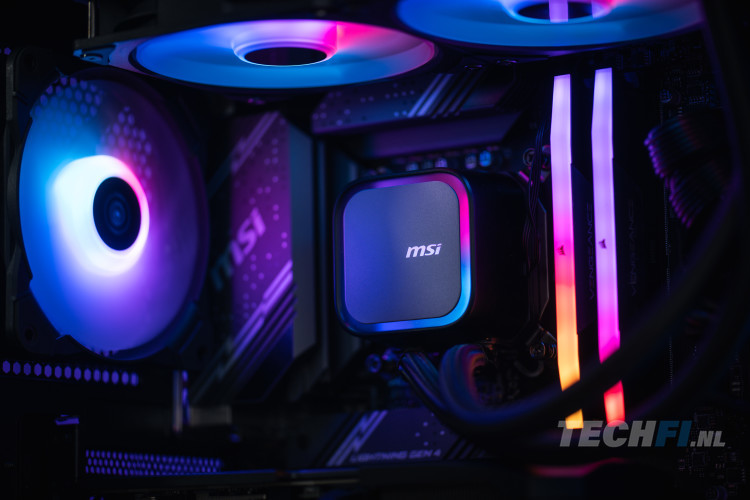 Voor eigen customization worden gebruikers doorverwezen naar MSI’s eigen Mystic Light-module in MSI Center. Het probleem daar blijkt echter dat die software geen directe toegang heeft tot de rgb-controller in MSI’s eigen Gungnir-kast, laat staan de reepjes rgb op de Corsair-geheugenmodules. Dat is toch jammer, zeker gezien de hoeveelheid inbegrepen lampjes. Daar hadden we graag meer mee gedaan – het liefst met meer kant-en-klare mogelijkheden. Denk aan mooie golven door het hele systeem of een voorgeïnstalleerd Don Kaaklijn-profiel.