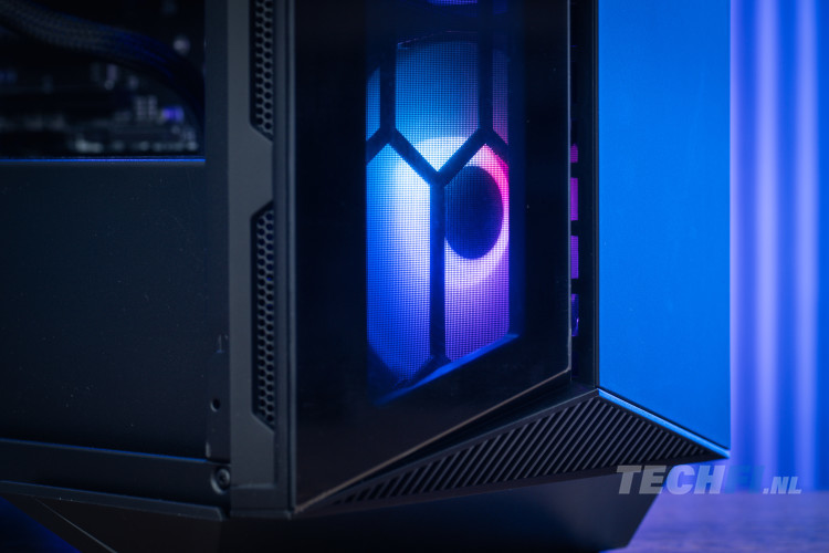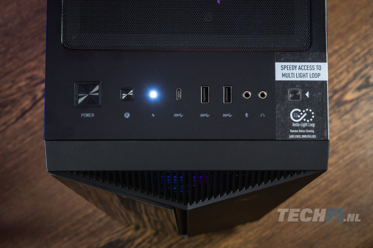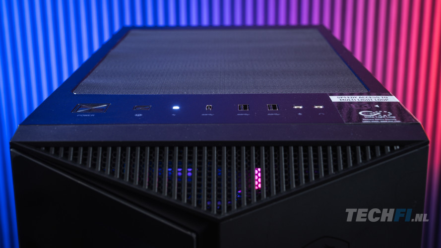 Dan hebben we het vooral over de aanwezigheid van een usb-c-poort (20 Gbps) bovenop de kast en de versnelling van twee usb-a-poorten (ditmaal tot 5 Gbps). Naast de usb-poorten vinden we wederom een extra knop om de rgb-lichten gemakkelijk te kunnen verstellen. Mocht dat nog niet aan het beeld af te zien zijn: deze systemen zetten flink in op kleurrijke rgb-lampjes.