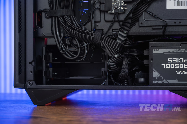 Wat betreft bouwkwaliteit van de assemblage: die is voldoende fraai. Graag hadden we achterin de kast nog net wat strakker tiewrap-werk gezien, maar op het zichtbare interieur is weinig aan te merken. Dat is uiteindelijk toch wat er voor de meesten toe zal doen. Het gros van de kabels is netjes uit het zicht getrokken, wat opgeruimd oogt én de rgb-verlichting uiteraard wat beter laat shinen.