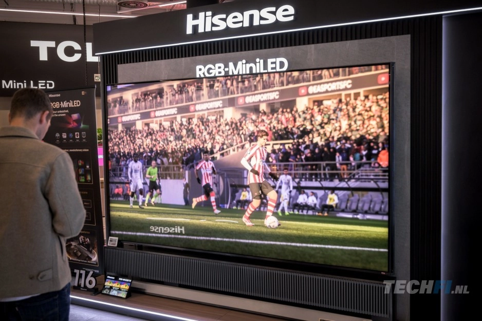 Hisense doet de rgb miniled UX-televisie uit de doeken met een potje FC26. Een voetbalspel, want het merk sponsort FIFA én er schijnt een grote voetbalcompetitie aan te komen. Daar moet je deze tech-nerds niet voor bellen, maar we waarderen de tie-in met een relevante game. De nieuwe miniled-technologie moet zich immers ook goed voor gamers lenen. Juist games hebben baat bij spetterende kleuren en hoge contrasten.
