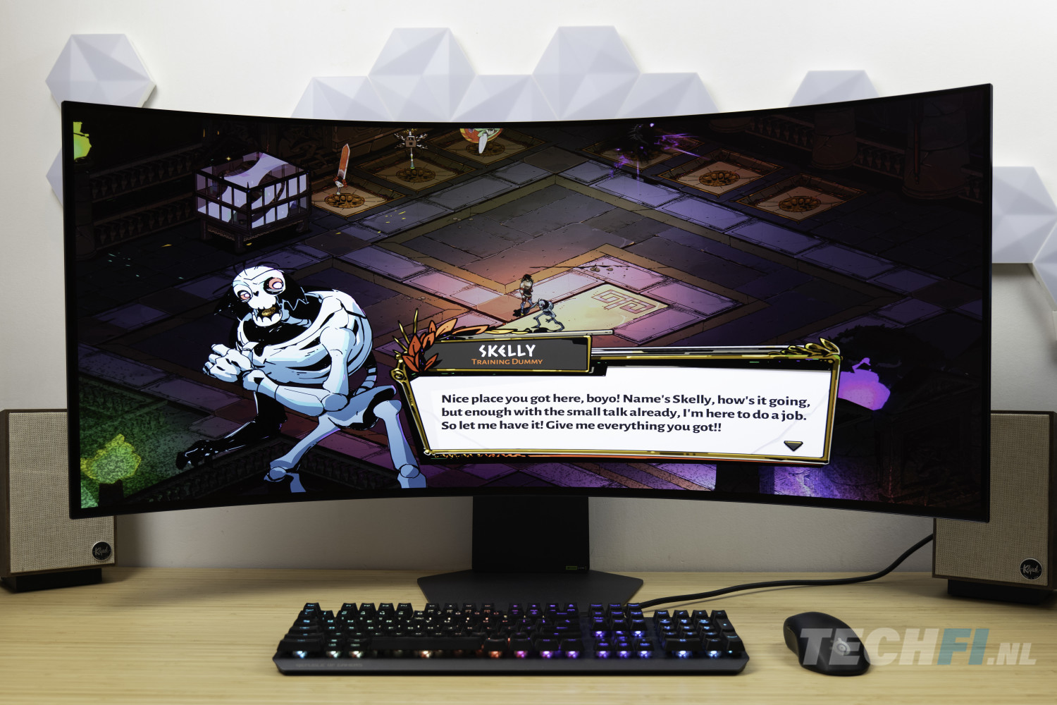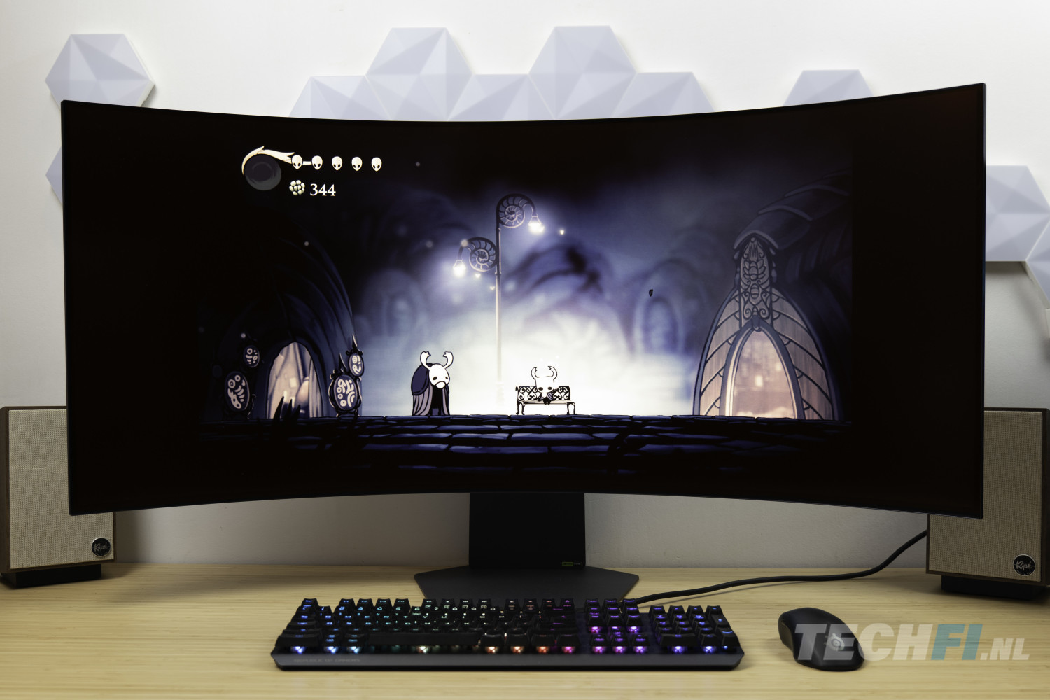 Niet alle games gaan even goed om met het ultrabrede formaat. Zo rekt Anno: 1800 zichzelf wel beeldvullend uit, maar feitelijk kijk je dan naar een lichtvervormd 16:9-plaatje - wat zeker opvalt zodra je een screenshot maakt. Monster Hunter: Rise laat zich ook maar moeizaam naar de native resolutie zetten - en vertoont dan beeldartefacten. Dat is de monitor niet aan te rekenen, maar meer iets om rekening mee te houden als je kiest voor ultrawide. Talloze andere games draaien wel prima, zoals Hades, Counterstrike 2, Cyberpunk 2077, Horizon: Zero Dawn Remastered, Shadow of the Tomb Raider en zelfs Hollow Knight.