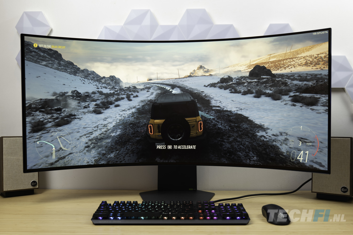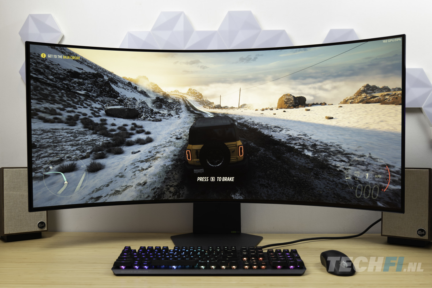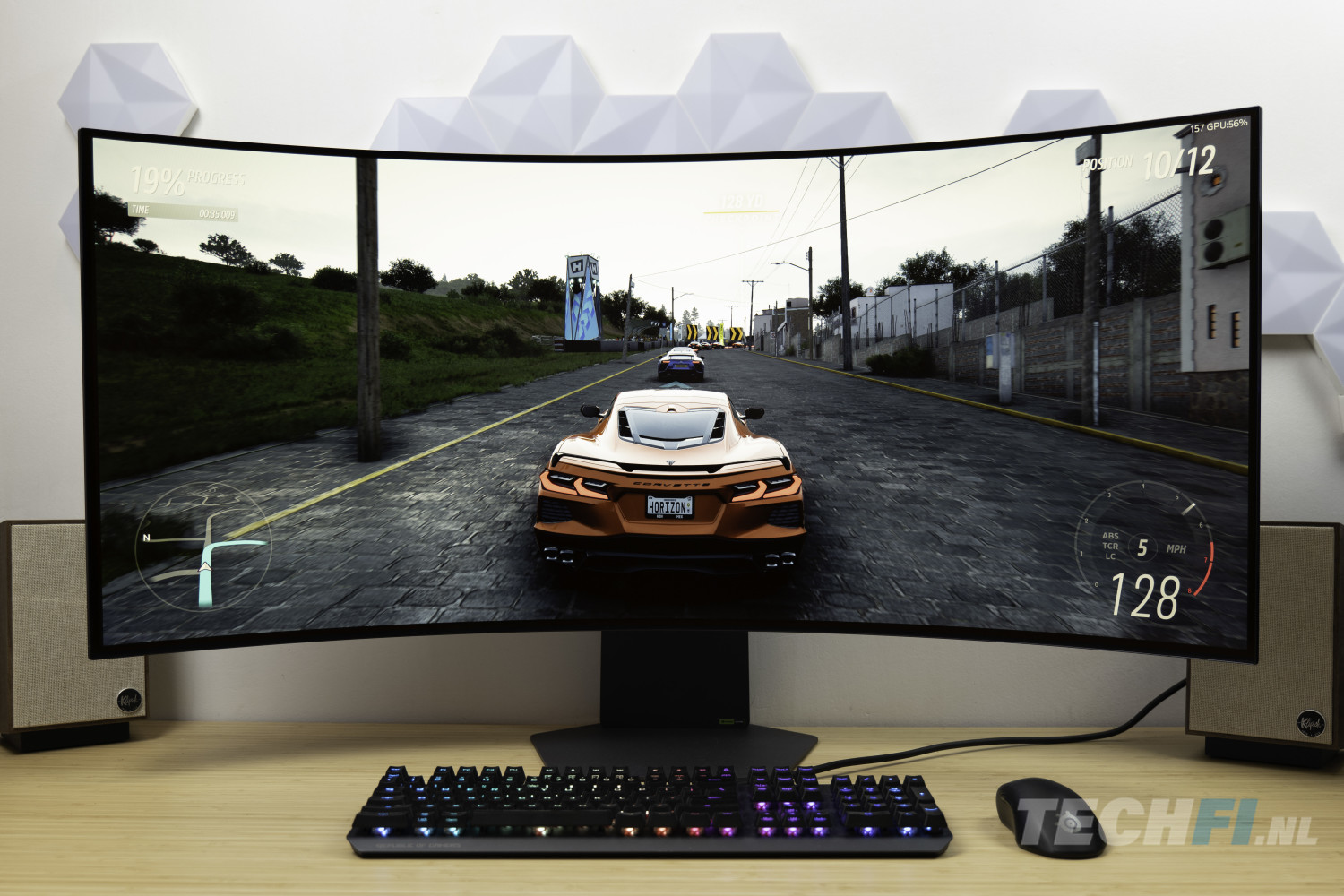 Het moge duidelijk zijn, puur op basis van het gebruik ben ik zeer te spreken over deze monitor. De hogere resolutie lost het voornaamste kritiekpunt van de eerdere 45-inchers op, en omvang en curve blijven belangrijke factoren in een omhullende ervaring. Tel daarbij op het uitstekende oled-contrast, en zeer rijke, natuurgetrouwe kleuren, en het dagelijks gebruik is een groot plezier. Tot het punt dat ik dit scherm met spijt in het hart weer in de doos steek.