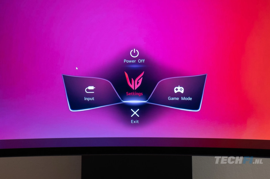 Voor de bediening heeft de LG GX9 zoals elke monitor een menu, in dit geval aangestuurd met een joystickje. Dat pookje zit achter het midden van de onderrand, goed onder handbereik. Een enkele indruk opent een snelmenu, van waaruit je dieper in de opties kan graven. Het verschilt niet van wat we bij andere recent geteste monitoren van dit merk hebben gezien. Lees nog eens bijvoorbeeld de review van de LG UltraGear 27GX790A door voor een uitgebreidere indruk.