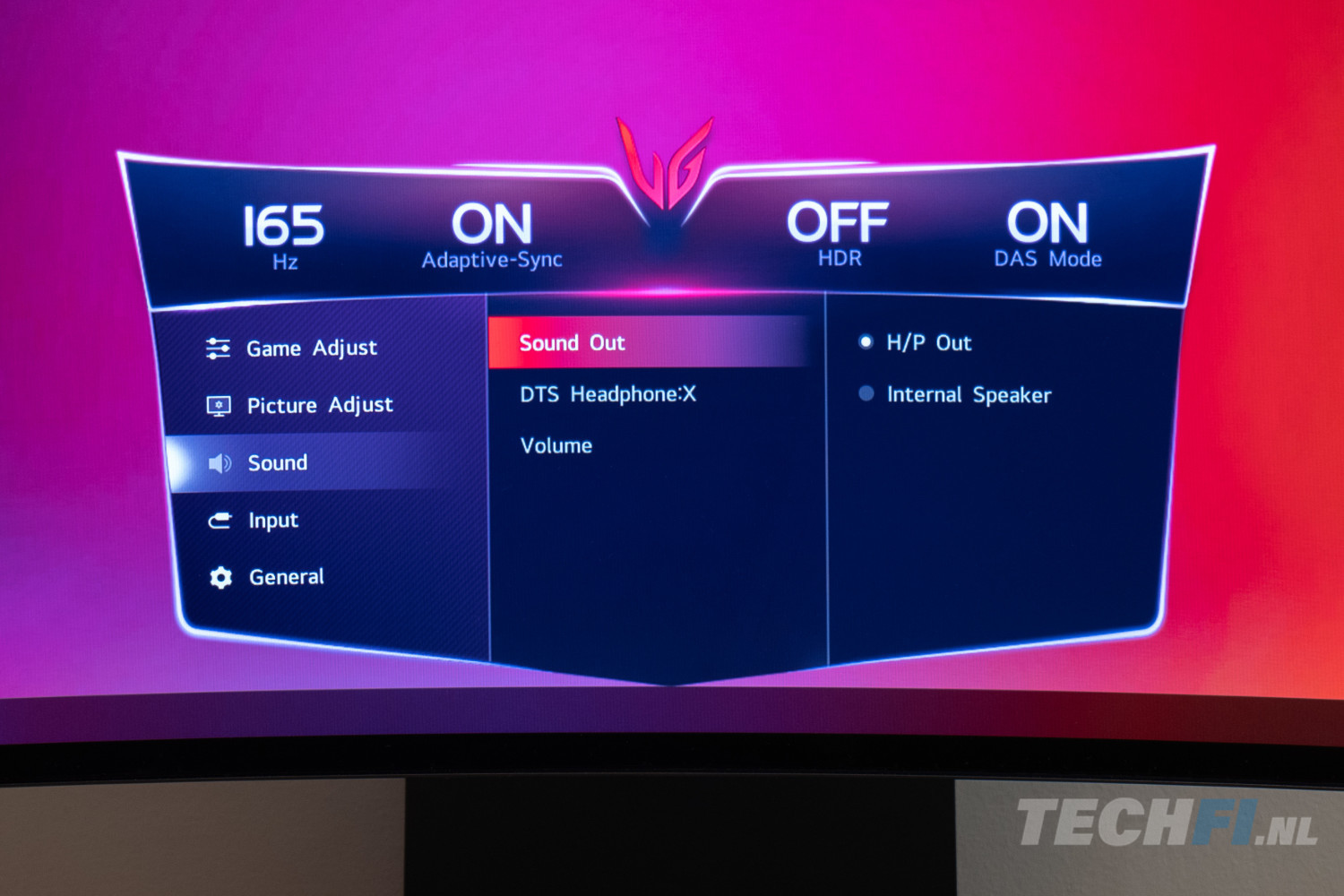 De meeste monitorspeakers verdienen geen extra kopje in een review. Een simpele bijzin: 'alleen voor noodgevallen' volstaat. Zo niet de luidsprekers van de UltraGear 45GX950A. Aangedreven door 10 watt aan versterking per stuk leveren deze duidelijk beter geluid dan de doorsnee monitorspeaker. Ze leveren een behoorlijk goede balans tussen midden, hoge en ja, ook lage tonen. Voor het laag kan ik wel opmerken dat een échte bas niet aanwezig is, maar het laag pakt veel dieper door dan op vrijwel elke ander beeldscherm dat ik heb getest.