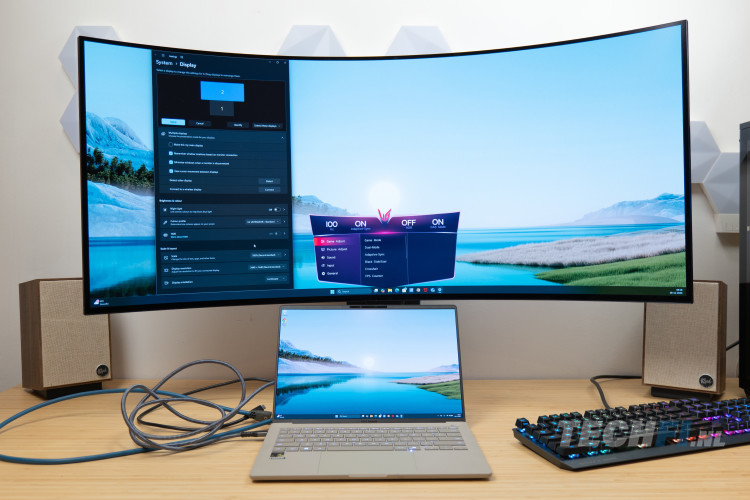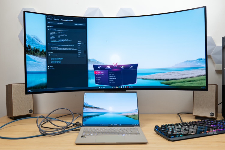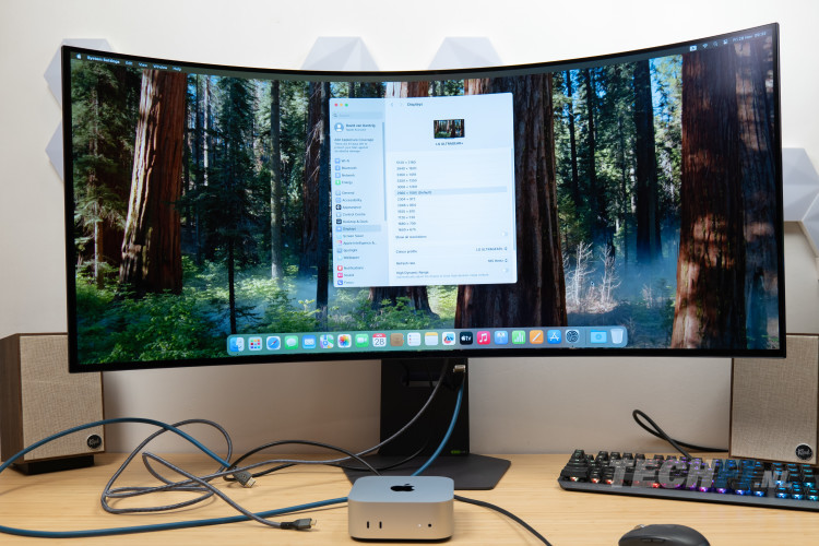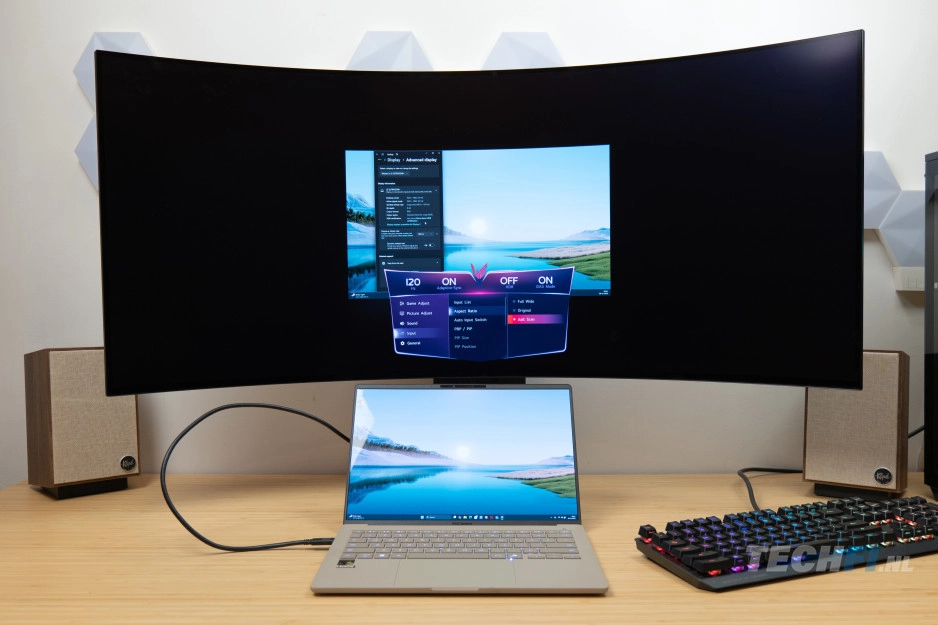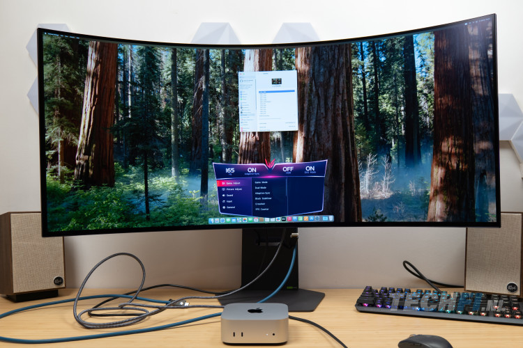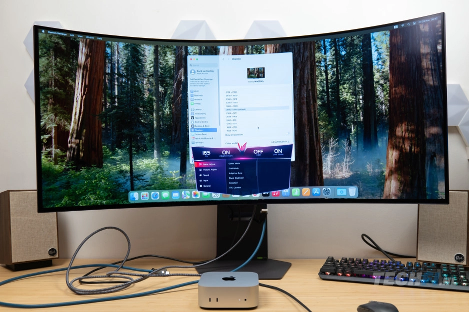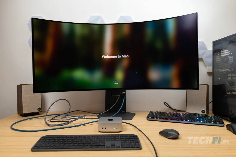 Omdat we in het TechFi kantoor toevallig bezig zijn met een test van een Asus Zenbook A14 met Qualcomm Snapdragon X Elite processor, en een Mac Mini M4 hebben aangeschaft met Black Friday, konden we ook kijken hoe de 45GX950A het doet met die systemen. Zeker gezien de usb-c-aansluiting op het scherm is het denkbaar dat je er eens een laptop aan hangt. En Apple zet fameus alleen in op usb-c als aansluiting, zij het dan in de vorm van Thunderbolt.