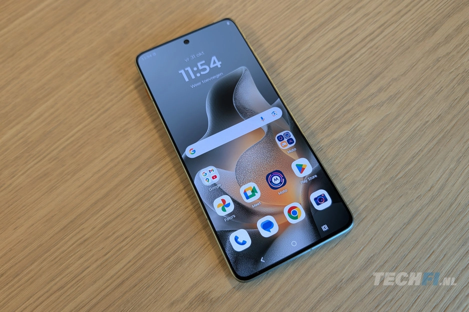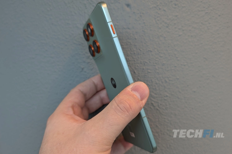 De Motorola Edge 70 zet die lijn onverkort voort. Het toestel komt in drie kleurvariaties, alle met een eigen kleuraccent rond de camera's. Dat zijn: Lily Pad (met Mandarin Orange), Gadget Gray (met Dazzling Blue) en Bronze Green (met Evening Primrose). Met name bij het zachtgroene Lily Pad vallen de oranjerode ringen behoorlijk op. Het is behoorlijk onderscheidend, zoveel toestellen met een nadrukkelijk contrasterende kleurstelling zijn er niet.