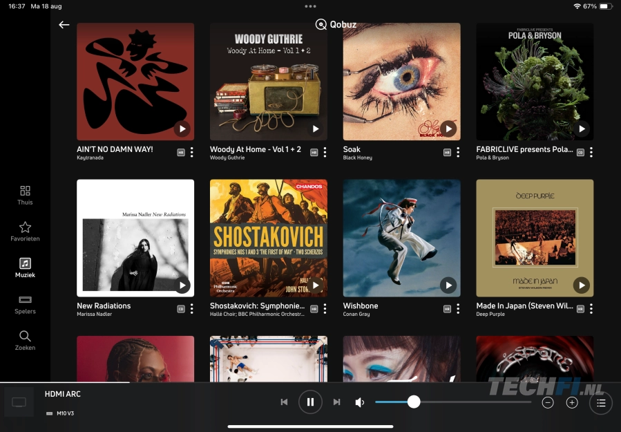 Wat misschien gek overkomt, is dat je op het toestel zelf geen streaming muziek kunt kiezen, of toch niet door te zoeken. Dat doe je dus via de BluOS-app. Wel kun je via de app presets instellen (zoals een voor een geliefd radiostation). Zo’n preset kun je wel activeren via het scherm, of via de remote.