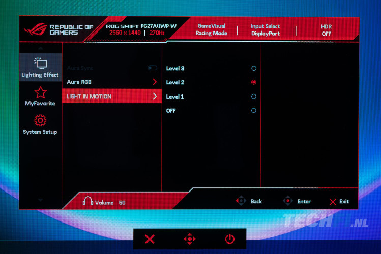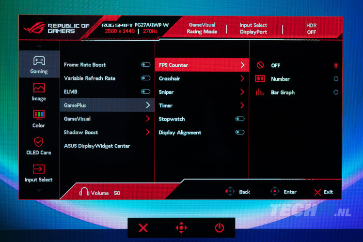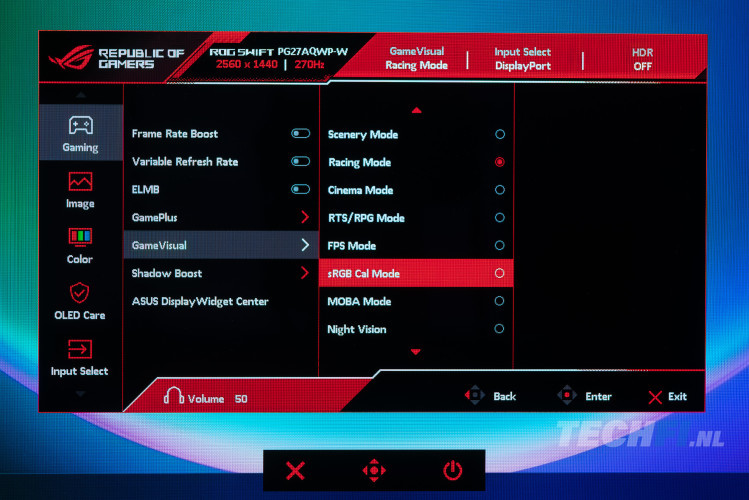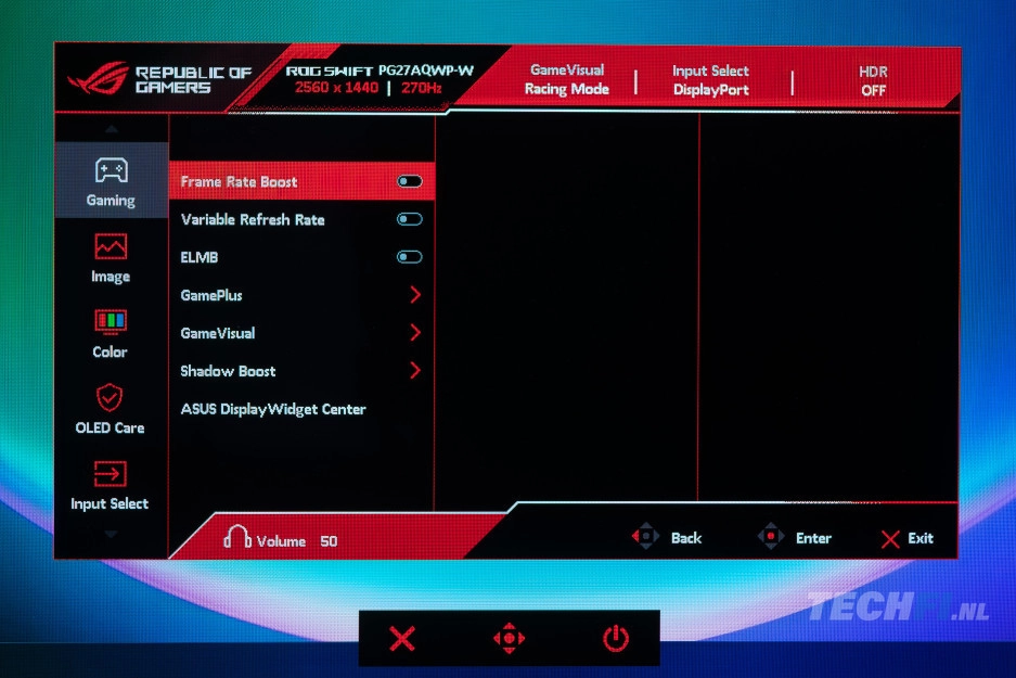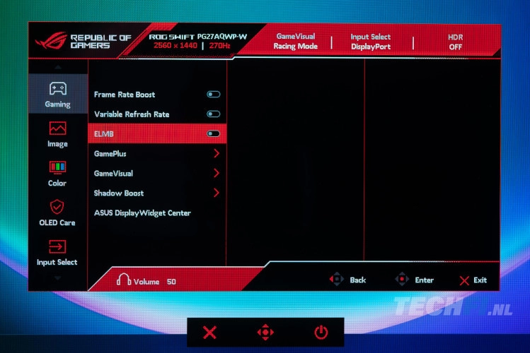 Mooie bijkomstigheid is dat ELMB op 270 Hz werkt op de ROG Swift OLED PG27AQWP. Bij de 500 Hz XG27AQDPG was dat 240 Hz. Nu is die 30 beelden per seconde geen wereld van verschil, maar het voelde toch wat gek dat de 500 Hz XG27AQDPG geen 250 Hz bood voor ELMB (maar alleen 240 Hz).