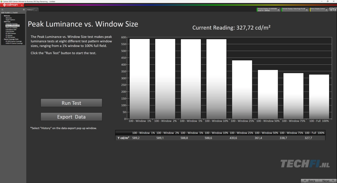 De ROG Swift OLED PG27AQWP-W is, net als de op qd-oled, DisplayHDR True Black 500 gecertificeerd. In sdr-modus biedt hij ruim 540 nits tot venstergroottes van 10%, en 325,6 nits op een 100% wit venster. Dat zijn waardes waar veel lcd-monitoren niet eens aan komen.