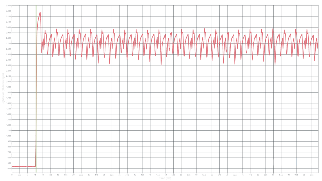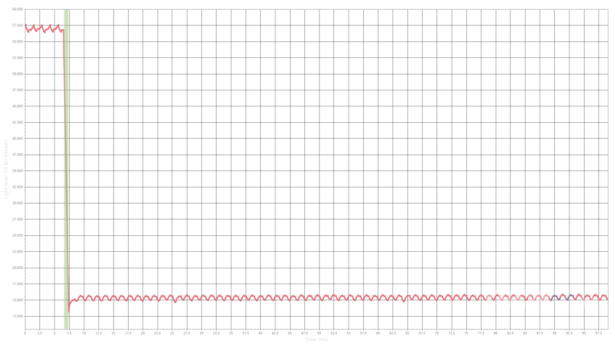 Het beeld op 720 Hz is minder fraai. Daar zie je in de metingen fors hogere helderheden aan het begin van transities, voordat ze stabiliseren. In de praktijk zie je dat niet terug als overshoot artefacten, maar in mijn beleving oogde het 720Hz-beeld wel minder rustig. Het laat zich lastig kwalificeren. Bij lagere helderheid ogen de testresultaten beter, wat erop lijkt te duiden dat de pixels minder moeite hebben met het vereiste helderheidsniveau snel genoeg aanpassen. Op 25% helderheid is het beeld het resultaat het beste - bij een lagere helderheid wordt het weer beduidend minder.