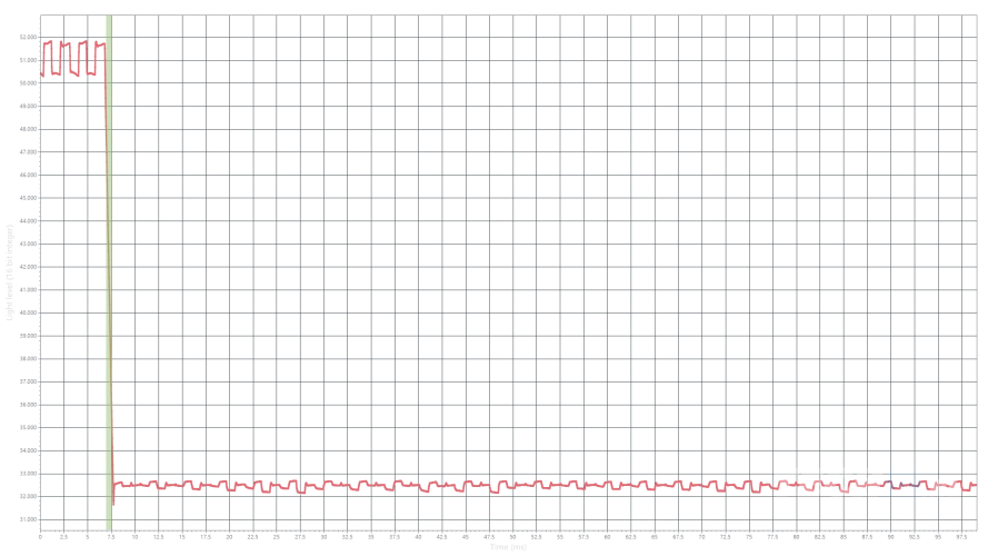 Responstijden (540 Hz): Gemiddeld waargenomen: 0,68 ms Percentage < 1,85 ms: 100% Beste: 0,3 ms Slechtste: 0,9 ms Responstijden (720 Hz, 25% helderheid): Gemiddeld waargenomen: 0,82 ms Percentage < 1,39 ms: 90% Beste: 0,4 ms Slechtste: 2,3 ms Input lag (540Hz) : Gem. on-display lag: 1,5 ms Laagste on-display lag: 0,01 ms Hoogste on-display lag: 2,9 ms Input lag (720Hz): Gem. on-display lag: 1,4 ms Laagste on-display lag: 0,01 ms Hoogste on-display lag: 3,4 ms |