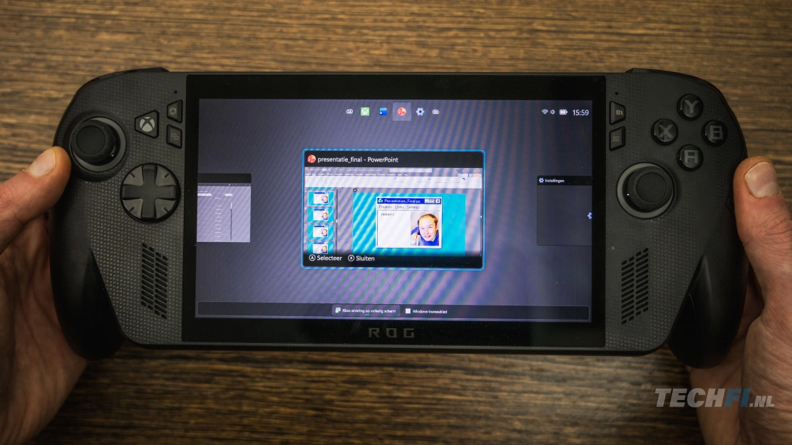 Het komt de handligging ten goede. De ROG Xbox Ally X ziet er wat log uit – de handheld is ook weer een tikkeltje dikker en zwaarder dan de eerdere Ally's – maar hij valt prettig in de palm. Van het extra gewicht merk je daardoor weinig. Gamers die de Xbox-controllers van nature goed kunnen hebben, zullen dit kunnen waarderen.