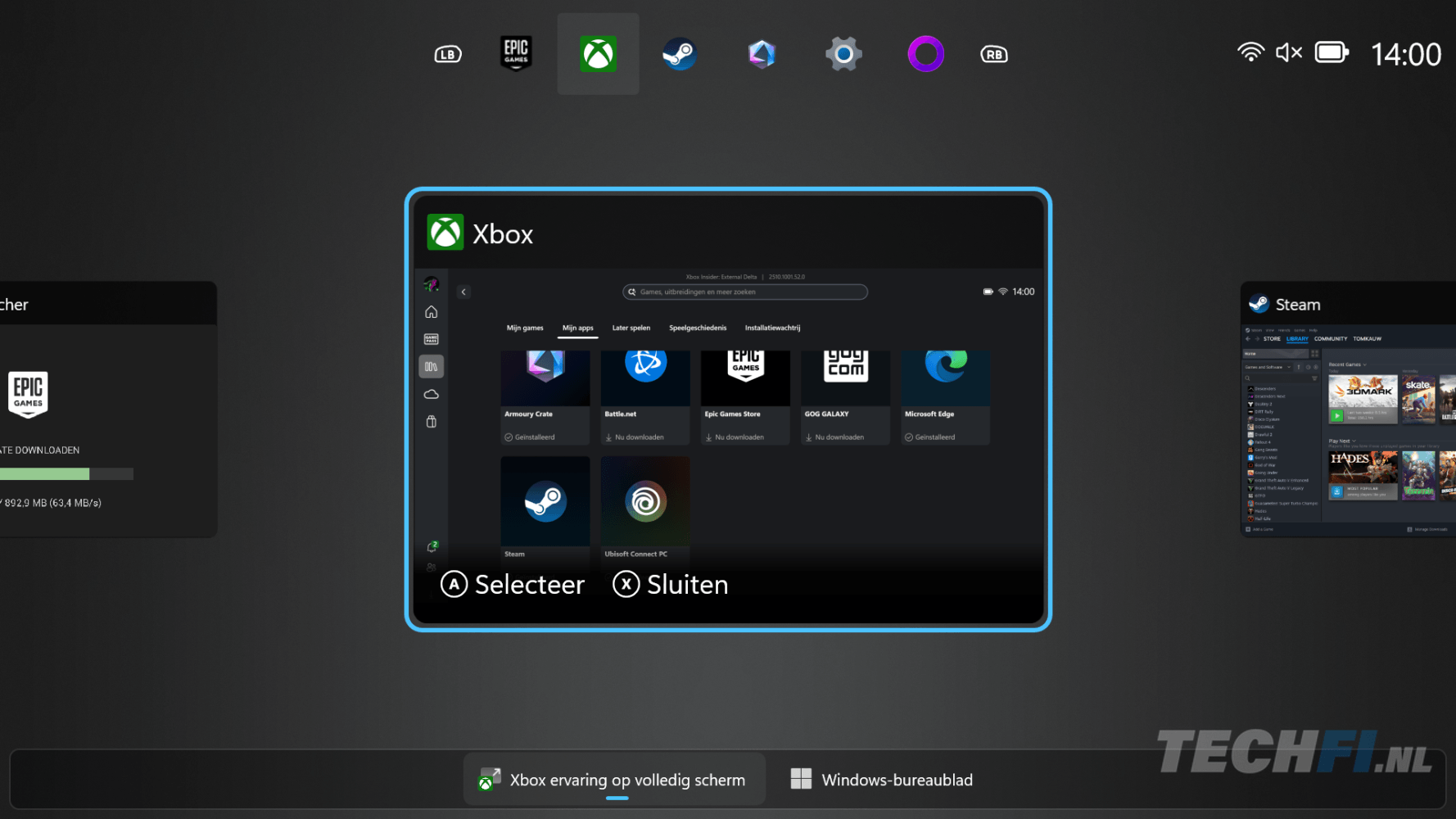 Vanuit de Xbox-laag kan er weliswaar gewisseld worden tussen verschillende vensters, maar het duurt niet lang voordat de Xbox Ally geheel overschakelt naar het traditionele bureaublad. Met al het ongemak vandien. Of het nu gaat om inloggen bij een nieuwe launcher, een verplichte update draaien of een screenshot bekijken: te pas en te onpas doet de ROG Xbox Ally X beroep op zijn Windows-aard.