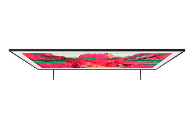Vermits de Samsung The Frame Pro niet alleen dient als tv, maar ook als kunstkader, wijkt hij wat af van het gebruikelijke ontwerp van hedendaagse tv’s. In plaats van een minimalistisch randje, heeft hij een duidelijke zwarte omlijsting. Aan de voorzijde is die 1 cm breed, in profiel 2 cm. Het scherm zelf ligt, zoals dat bij een kunstwerk zou zijn, er lichtjes in verzonken. Het totale profiel is 2,5 cm diep, zodat de tv werkelijk als een schilderij aan de muur kan hangen.