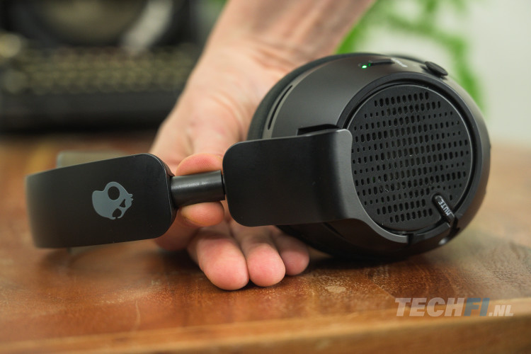 Dat valt namelijk op aan de verstelbaarheid: op zijn kleinst valt de koptelefoon alsnog groot uit. Van echte klemming is weinig sprake. Op de piste was dit na één ollie van je hoofd gesprongen, laat staan de titulaire 720-rotatie. Ondergetekende draagt een helm met maatje S, en daarvan wil de headset maar al te graag losschieten. Deze Skullcandy lijkt, niet oneerbiedig bedoeld, toch meer voor Amerikaanse hoofden gemaakt. Gamers met een grotere schedelomtrek ervaren hier waarschijnlijk meer houvast.