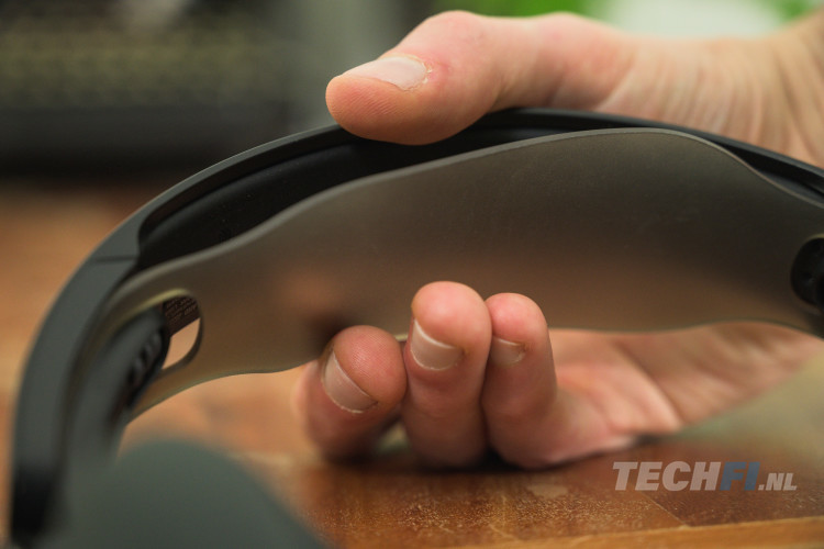 Minder duurzaam: de buitenkant van de PLYR 720 is volledig in kunststof gehuld – en dat lijkt ook niet het beste spul. De vele zwarte oppervlaktes zijn vlekgevoelig en de headset kraakt regelmatig bij het verstellen of draaien van de oorschelpen. De hoofdband wordt vergroot door stugge rubberen springveren uit te rekken; ook hier komt geen metalen constructie aan te pas. Op veel fronten voelt de PLYR 720 daardoor niet zo premium als de prijs doet vermoeden.
