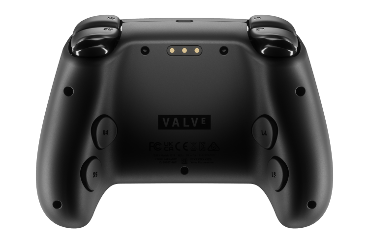 Bij de Steam Machine komt ook een nieuwe controller. Die heet gewoon Steam Controller, en is óók niet het eerste apparaat met die naam. De vorige Steam Controller dateert uit 2015 en was (en is) een curiositeit met twee ronde touchpads in plaats van de gangbare D-pad. Er zat ook een analoge stick en een stel knoppen op, maar het was bovenal bedoeld als muisvervanger. De nieuwe Steam Controller oogt een stuk traditioneler, zeker van opzij bezien.