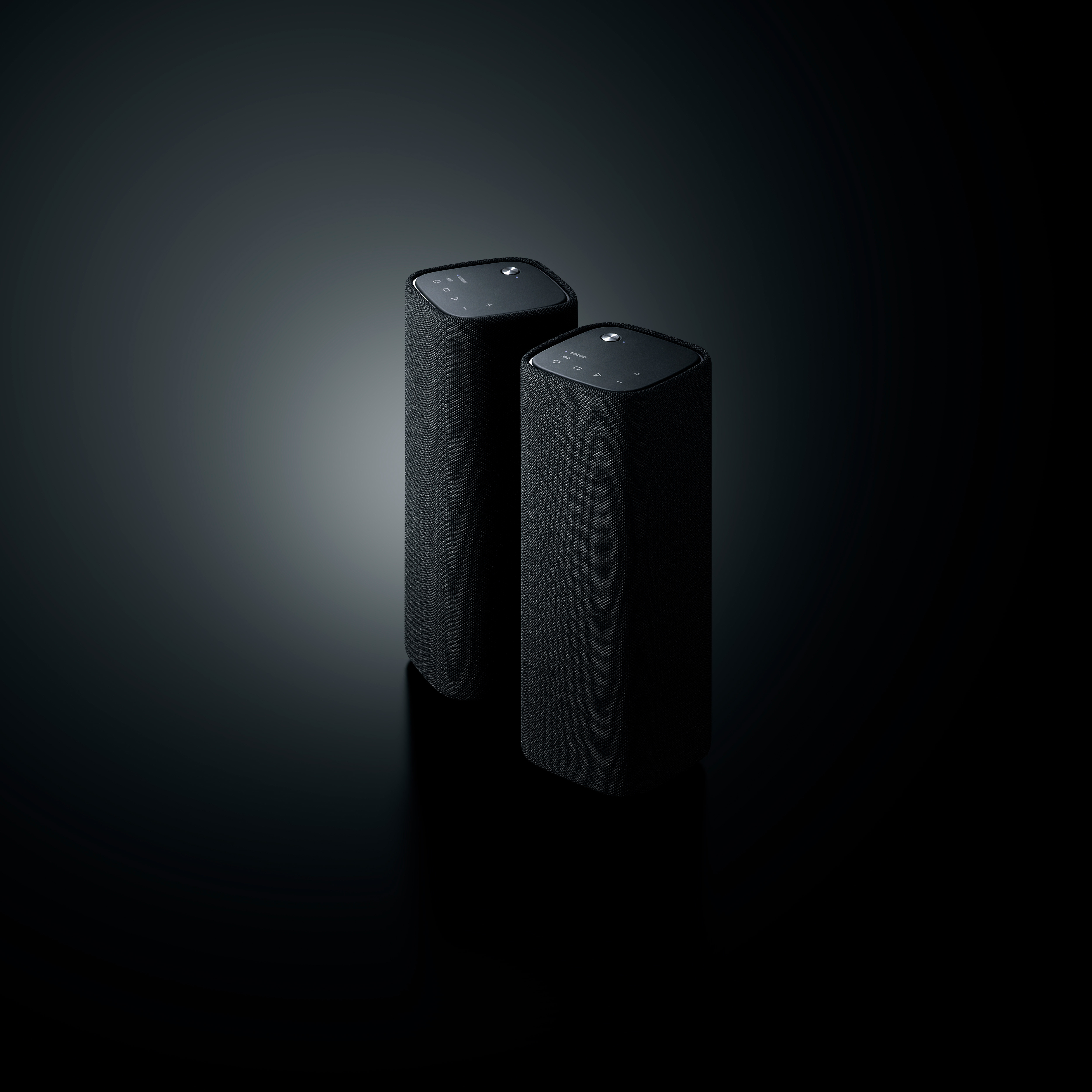 De surroundspeakers maken verbinding met een propriëtaire 5,8GHz-verbinding, en zijn voorzien van oplaadbare accu's. Ze kunnen naast als surroundspeaker ook dienst doen via Bluetooth als 'solo' luidspreker of als paar in een party-modus. Ze zijn bovendien stof- en waterdicht, dus ook een feestje buiten moeten ze kunnen overleven.